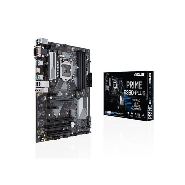 SpecificationsMfr Part Number: PRIME B360-PLUSCPU: LGA1151Supports the 8th Generation Intel Core i7/ i5/ i3/ Pentium/ Celeron ProcessorsSupports 14nm CPUSupports Intel Turbo Boost Technology 2.0Chipset: Intel B360Memory: 4x DDR4-2666/ 2400/ 2133 MHz DIMM Slots, Dual Channel, Non-ECC, Unbuffered, Max Capacity of 64GBSlots: 1x PCI-Express 3.0/2.0 x16 Slot, 1x PCI-Express 3.0/2.0 x16 Slot (max. at x4 mode, compatible with PCIe x1, x2 and x4 devices), 2x PCI-Express 3.0/2.0 x1 Slots, 2x PCI slotsMulti-Graphics: Supports AMD CrossFireX TechnologyStorage:​SATA: 6x SATA3 PortsM.2: 2x M.2 Ports (w/ M Key), one supports type 2242/ 2260/ 2280 & SATA mode & x2 PCIE mode, one supports type 2242/ 2260/ 2280 & x4 PCIE modeAudio: Realtek ALC887 8-Channel High Definition Audio CODECLAN: Realtek 8111H Gigabit Ethernet ControllerPorts: 2x USB 3.1 Gen 2 Ports (Type-A rear), 4x USB 3.1 Gen 1 Ports (2 Type-A rear, 2 at mid-board), 6x USB 2.0/1.1 Ports (4 rear, 2 at mid-board), 1x PS/2 Keyboard/Mouse Combo Port, 1x VGA Port, 1x DVI-D Port, 1x HDMI Port, 1x RJ45 LAN Port, Audio I/O JacksPower Connector: 1x 24pin EATX Power Connector, 1x 8pin EATX 12V Power connectorForm Factor: ATX, 12.0 x 8.7 inch / 30.5 x 22.1 cm
