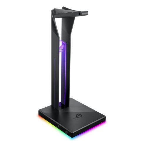 ?á ROG Throne Qi with wireless charging, 7.1 surround sound , dual USB 3.1 ports and Aura Sync Efficient and fast Qi wireless charging technology with gaming style for any gaming room Customizable 18 RGB lighting zones, and sync-able with other Aura Sync products Build-in ESS DAC and AMP deliver stunning music and immersive gaming audio Support 2 USB 3.1 ports (1.5A) to charge devices or connect to your gaming gears Armoury II software offers extensive audio and light controls for your gaming experience Optimized arc design of top hanger stables and protects your headset from shaking ?á ?á Rule your Gaming Area ?á ROG Throne Qi is a gaming headset stand with wireless charging designed to keep your Qi-enabled smartphone or other compatible devices ready for action and your gaming area organized. A built-in ESS DAC and amplifier upgrades your headphone audio experience, delivering immersive gaming audio, while customizable 360-degree RGB lighting effects that synchronize with other Aura Sync accessories enable a stunning, unified lighting experience. ROG Throne Qi also features an ultrafast, two-port USB 3.1 hub with power delivery, rounding it out as a complete solution for organizing and upgrading your gaming setup. ?á ?á ?á ?á ?á Get Organised, Stay Charged ?á The ROG Throne Qi headset stand provides a dedicated spot to store your gaming headphones combined with the convenience of Qi wireless charging, keeping your gaming area organized and free from the clutter of charging cables. Fast and efficient Qi wireless charging* lets you charge your Qi-enabled phone and other compatible devices, and a built-in LED indicator keeps you apprised of the charging status. ?á ?á ?á ?á ?á Upgrade your Audio Experience ?á ROG Throne Qi features a built-in ESS 9118 DAC and amplifier that provides upgraded headphone audio for gaming and streaming music and video. And, with Hyper Grounding and audio signal diversion technology that unlocks the full potential of the ESS DAC by processing audio and lighting signals individually, you'll enjoy detailed, dynamic and immersive sound with your favorite games and media and experience them like never before. ?á ?á ?á ?á ?á Asus Aura RGB Lighting ?á Express your gaming style with customizable Aura RGB lighting on ROG Throne Qi. With 18 RGB lighting zones that can be customized independently with your choice of over 16.8 million color combination, plus six preset lighting effects, you can create a stunning lighting experience that's totally your own. ?á ?á ?á ?á ?á Synchronise your Gear ?á ASUS Aura Sync technology allows you to synchronize lighting effects across Aura-enabled ROG products* to create a unique and captivating gaming atmosphere. ?á ?á ?á ?á ?á More Power and Connectivity ?á ROG Throne Qi is also a USB hub with two USB 3.1 ports that provide ultrafast connectivity and 1.5A of power to charge your devices, so you can always stay connected and keep all of your devices powered up, even if they don't support Qi wireless charging. ?á ?á ?á ?á ?á Optimised Arc Design ?á An optimized arc design with an anti-slip rubber pad provides a stable platform to hold your headset securely and protects against shakes and bumps. Additionally, the large contact area on the arc evenly distributes the weight of your headset, protecting against deformation of the headband cushion to ensure it stays in good condition and remains comfortable. ?á ?á ?á ?á ?á Armoury II ?á Armoury II software offers extensive controls and an intuitive UI, so you can easily tune ROG Throne Qi to play your way. Take full control of your audio experience, from 7.1 virtual surround, equalization (EQ) to 7.1-speaker level-balancing, and easily create and apply audio profiles for different game types, such as first-person shooters and racing for the best, most immersive sound quality in any scenario.