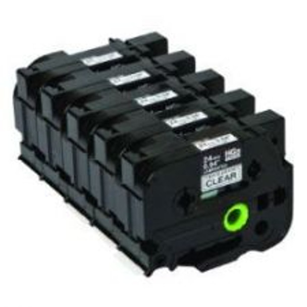 Brother HGE-151V5 Black on Clear 8M x 24mm High Grade Tape 5pk