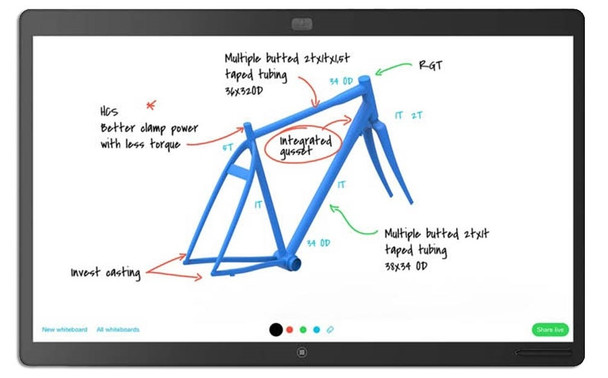 DisplayDisplay number of colours1.073 billion colorsDisplay technologyLEDDisplay typeLCDViewing angle, vertical89°Viewing angle, horizontal89°Touchscreen technologyCapacitiveLED backlightYesFull HDYesDisplay resolution3840 x 2160 pixelsAspect ratio16:9Display diagonal55"Contrast ratio (typical)4000:1Display brightness350 cd/m²Response time5.5 msDesignColour of productBlackPerformanceTouch technologyMulti-touchBuilt-in microphoneYesBuilt-in cameraYesOn Screen Display (OSD) languagesGerman, English, Spanish, FrenchBuilt-in speaker(s)YesNetworkingWi-FiYesWi-Fi standardsIEEE 802.11a,IEEE 802.11ac,IEEE 802.11b,IEEE 802.11g,IEEE 802.11nEthernet LANYesBluetoothYesPorts & interfacesUSB 3.0 (3.1 Gen 1) Type-A ports quantity2HDMI ports quantity1Audio output1ErgonomicsWall mountableYesPowerAC input voltage100 - 240AC input frequency50/60Power supply typeACPower consumption (typical)185 WOperational conditionsOperating temperature (T-T)0 - 35 °COperating relative humidity (H-H)10 - 90%Technical detailsPower supply typeACPackage weight101 lbs (45.8 kg)AudioBuilt-in speaker(s)YesColourColour of productBlackSoftwareBundled softwareCisco Spark Board OSWeight & dimensionsWeight87.7 lbs (39.8 kg)Width50.5" (1283 mm)Height32" (814 mm)Depth1.93" (49 mm)Packaging dataBundled softwareCisco Spark Board OSPackage width55.7" (1416 mm)Package depth7.52" (191 mm)Package height36.2" (919 mm)Package weight101 lbs (45.8 kg)Packaging contentBundled softwareCisco Spark Board OS