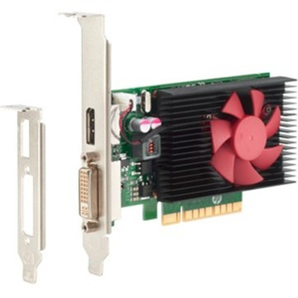 SpecificationsManufacturer: HP Inc.Manufacturer Part Number: Z9H51AAManufacturer Website Address: http://www.hp.comBrand Name: HPProduct Name: NVIDIA GeForce GT 730 Graphic CardMarketing Information: Get impressive graphics and high resolution quad-display performance from the NVIDIA® GT 730 2GB DP Card.Features Enjoy support for up to four displays from Dual-Link DVI and DisplayPort™ connectors. Eliminate the need to share PC system memory with 2 GB DDR5 dedicated on-board graphics frame buffer memory. Support your OpenGL 4.4 and DirectX 12 applications with compatibility integrated into the hardware. Compatible with HP ProDesk 400 G4 Small Form Factor PC; HP ProDesk 400 G4 Microtower PC; HP ProDesk 600 G3 Microtower PC; HP ProDesk 600 G3 Small Form Factor PC; HP EliteDesk 800 G3 Tower PC; HP EliteDesk 800 G3 Small Form Factor PCProduct Type: Graphic CardTechnical InformationAPI Supported: OpenGL 4.4OpenCL 2.0DirectX 12DirectCompute 11Number of Monitors Supported: 4Processor & ChipsetChipset Manufacturer: NVIDIAChipset Line: GeForceChipset Series: GT 700Chipset Model: GT 730Number of GPUs: 2GPU Clock: 900 MHzMemoryStandard Memory: 2 GBMemory Technology: GDDR5Interfaces/PortsDisplayPort: YesNumber of DisplayPort Outputs: 1VGA: NoDVI: YesTotal Number of DVI Outputs: 1Dual Link DVI Supported: YesNumber of DVI-I Ports: 1Physical CharacteristicsForm Factor: Plug-in CardCard Height: Low-profileMiscellaneousPlatform Supported: MacPC