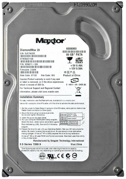 Seagate DiamondMax 20 80GB 7200RPM ATA-100 2MB Cache 3.5-inch Internal Hard Drive Mfr P/N 9DN011-326